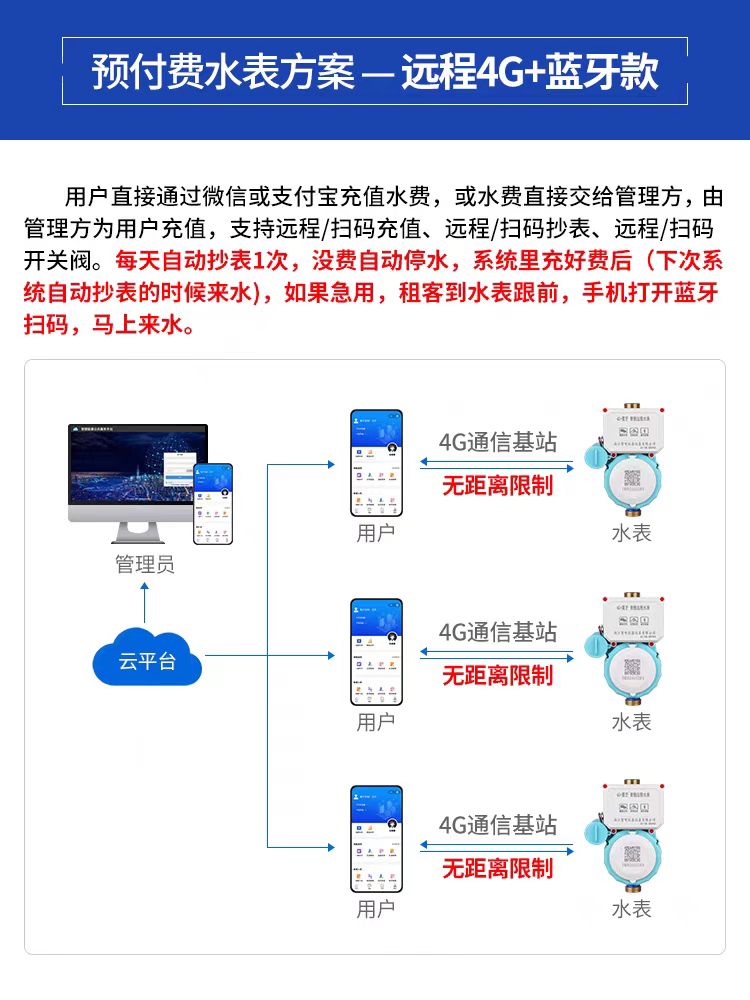4G無線閥控預(yù)付費(fèi)智能水表是-種預(yù)付費(fèi)的水費(fèi)管理模式,用戶需要預(yù)先充值才能使用水資源,這種功能的實(shí)現(xiàn)不僅提高了水費(fèi)收取的效率,還減少了欠費(fèi)和催繳的問題,以下是4G無線閥控智能水表預(yù)付費(fèi)功能的實(shí)現(xiàn)原理: