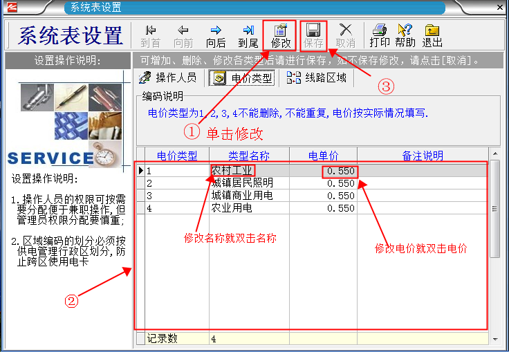 3.修改電價(jià)步驟如下。