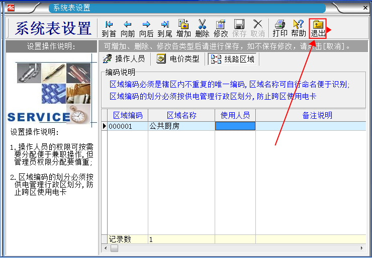 “區(qū)域”的意思就是,你想把電表分成幾個(gè)區(qū)域使用,你就設(shè)置幾個(gè)區(qū)域。如(你有6只電表,想分成ABC三個(gè)區(qū)域,A區(qū)的用戶 不能在BC區(qū)使用,B區(qū)的用戶不能在AC區(qū)使用,C區(qū)的用戶不能在AB區(qū)使用。  如果想讓所有的用戶在所有的電表上都能使用的話,就1個(gè)區(qū)域就可以了)。