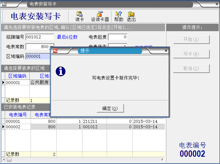 系統(tǒng)設(shè)置完成之后,把IC卡插入讀卡器,就進(jìn)入制作“區(qū)域設(shè)置卡”。如下圖