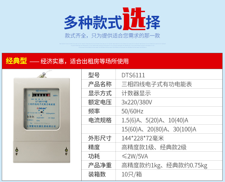 DTS6111型三相四線和DSS6111型三相三線兩種型號三相電子式有功電能表,內部運用了集成電路在經過SMT工藝生產制作而成。結構設計合理,制作工藝先進。跟傳統的電能計量表對比,三相電子式有功電能表的測量準確度高、性能可靠、節能。
