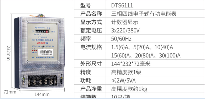型號:DTS6111三相四線電表(透明)