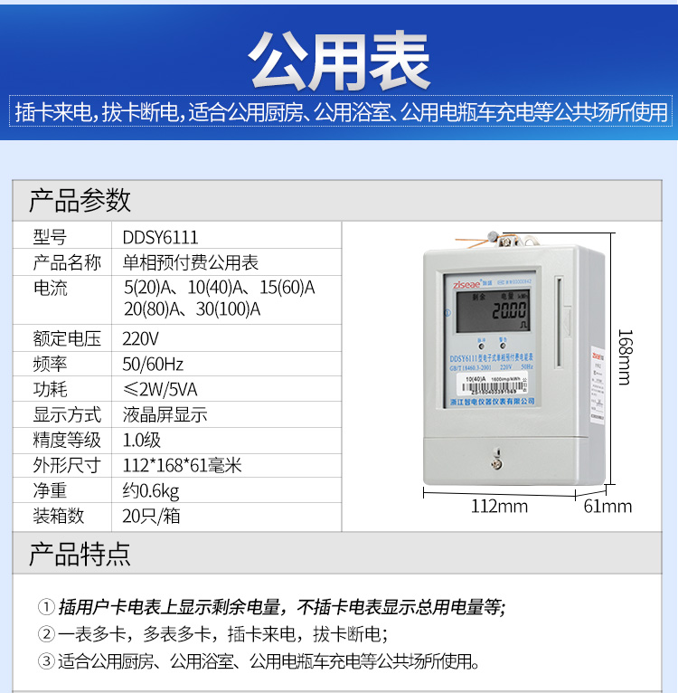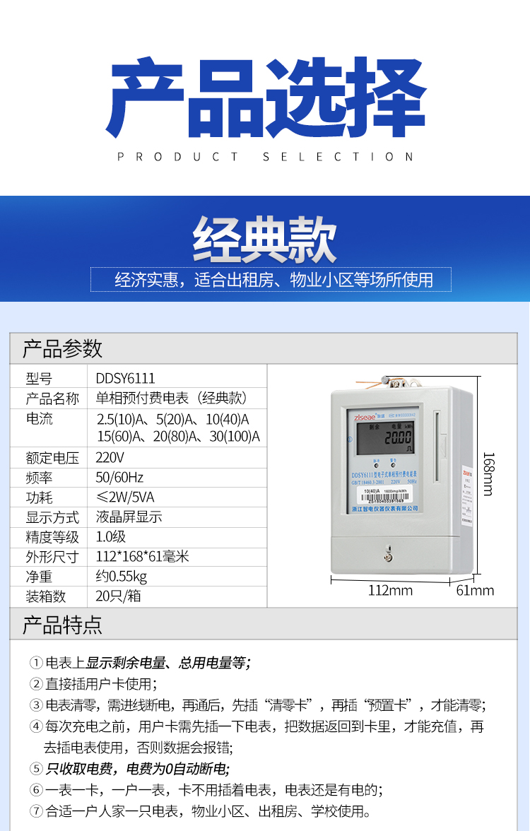 DDSY6111型電子式單相預(yù)付費(fèi)電表,采用集成電路設(shè)計(jì),全自動(dòng)表面貼裝(SMT)生產(chǎn)工藝制造。電能表的線路設(shè)計(jì)和元器件選擇以較大的環(huán)境允差為依據(jù),可保證整機(jī)穩(wěn)定工作,精度高、高過(guò)載、低功耗,可靠性能高。內(nèi)置磁保持繼電器。通過(guò)控制繼電器實(shí)現(xiàn)控制負(fù)載的通與斷,實(shí)現(xiàn)督促用戶先買(mǎi)電后用電的功能。