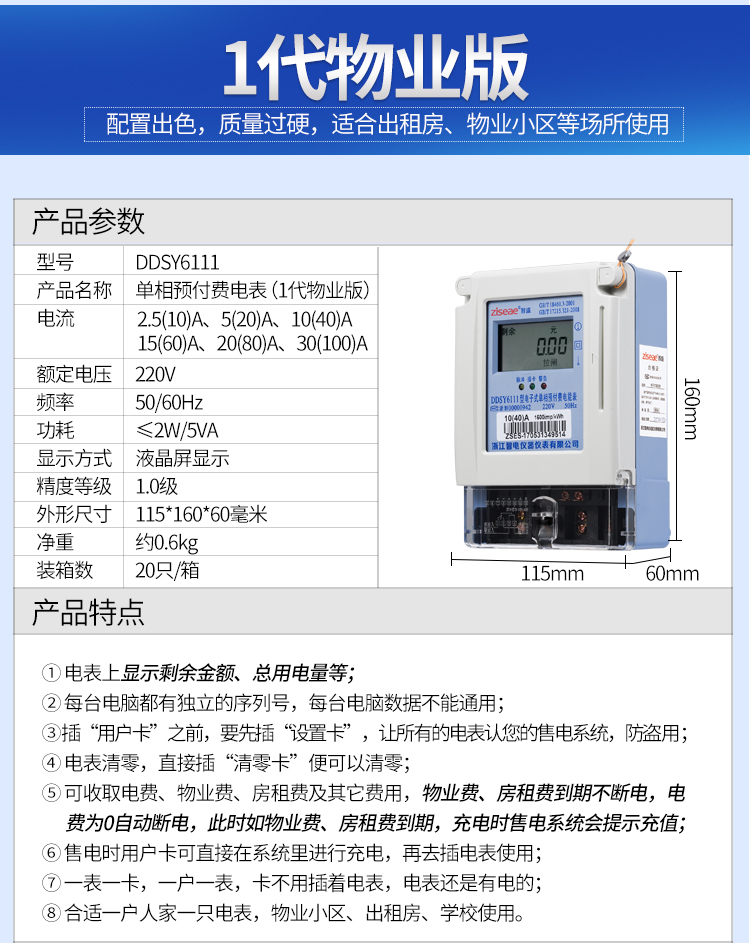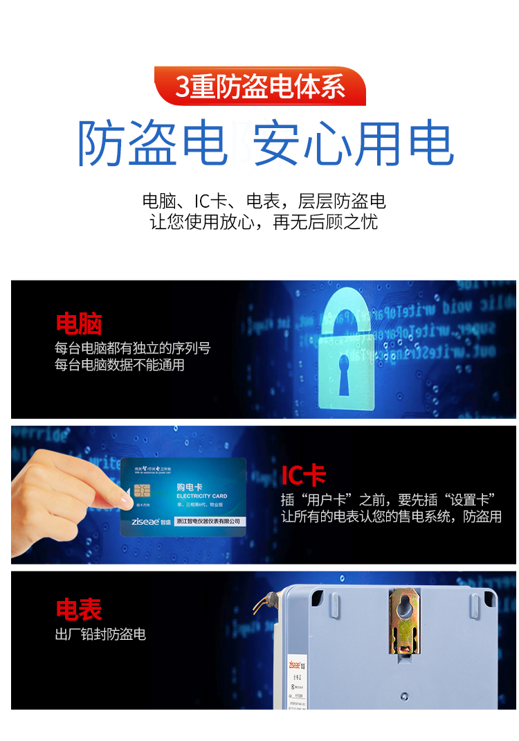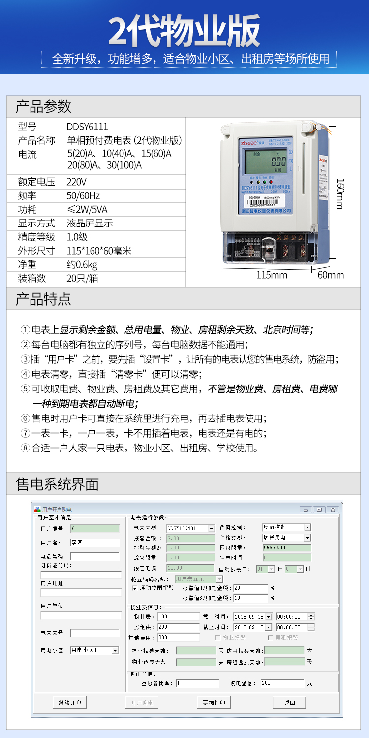 主要特點(diǎn):應(yīng)用計(jì)算機(jī)管理,先購(gòu)電后用電;在額定電流范圍內(nèi)能限制使用功率(由供電部門(mén)限定);一表一卡,專卡專用,失卡不失電,補(bǔ)卡再用;電卡能雙向傳遞數(shù)據(jù),能自動(dòng)斷電告警用戶購(gòu)電;電量為零時(shí),自動(dòng)拉閘斷電;并具有一定的防竊電軟件設(shè)計(jì)等。