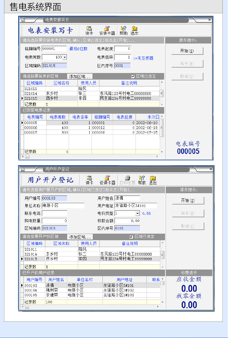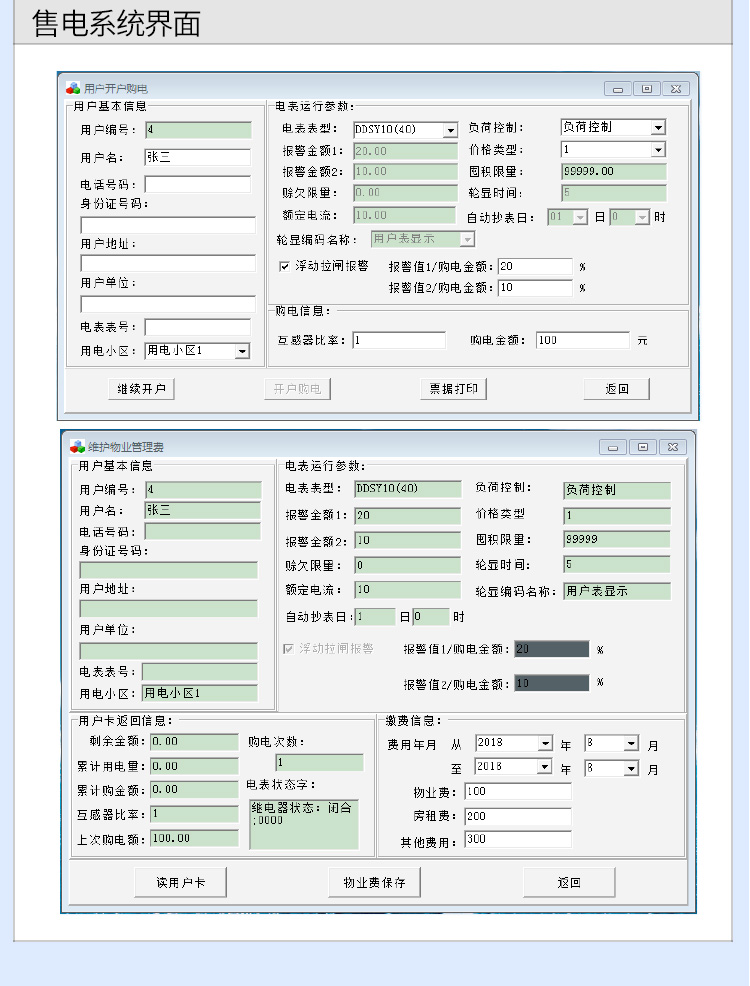 7、購(gòu)電方式:售電時(shí),將IC卡插入IC卡讀寫(xiě)器,同時(shí)操作計(jì)算機(jī),將用戶編號(hào)、預(yù)購(gòu)電量、報(bào)警電量、限容方式及限容功率等加密寫(xiě)入IC卡。
