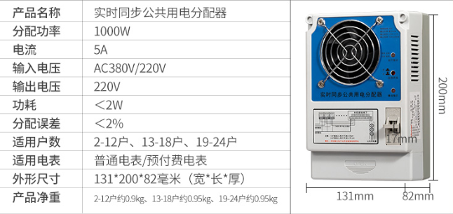 型號(hào):2-12戶 13-18戶 19-24戶公共用電智能用電分配器