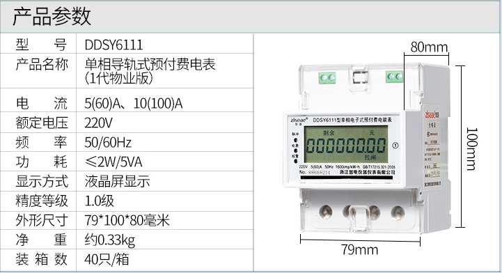 型號:DDSY6111單相導軌預付費電表