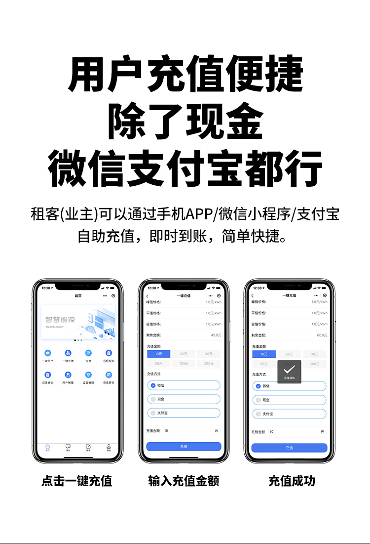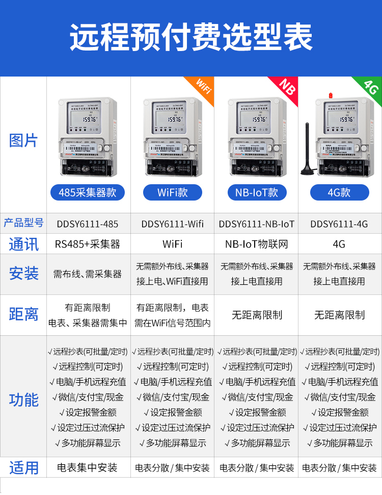 本公司DDSY6111\DDZY6111遠程智能電表與本公司遠程抄表系統和手機APP配套使用,遠程抄表管理系統具有實時抄表、定時抄表外,還提供了設備管理功能,如告警、余額短信通知、遠程充值、手機抄表、手機查詢、手機充值、預付費、后付費、自助充值機充值、遠程拉合閘、各種查詢報表、統計報表下載等功能。